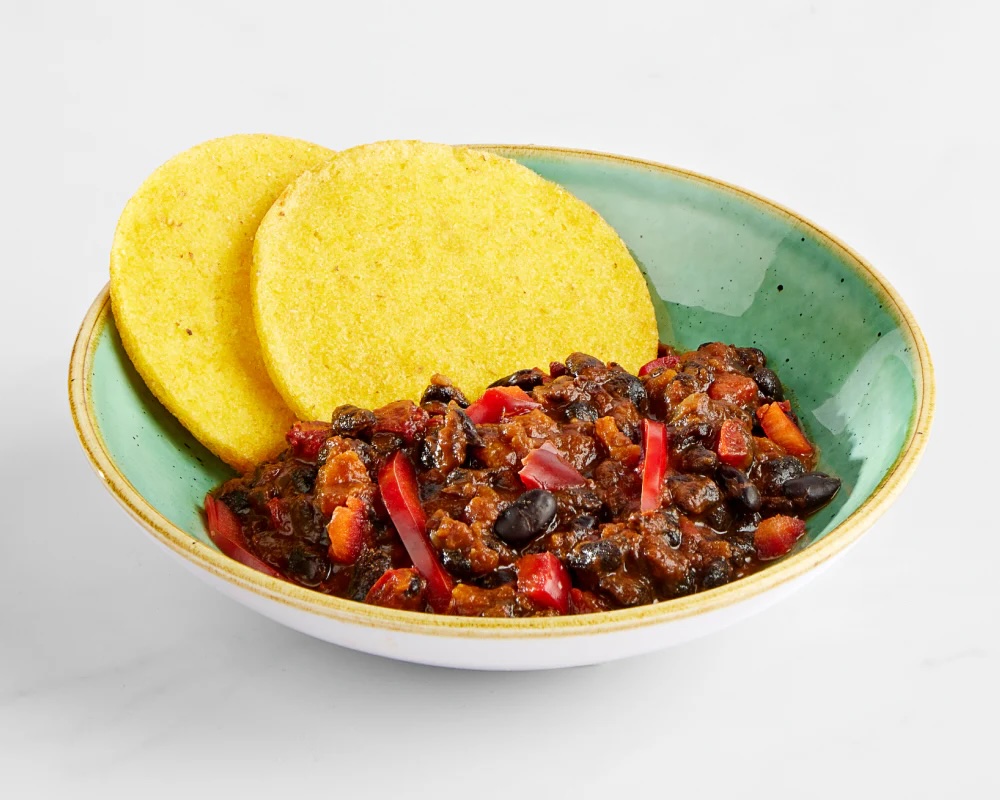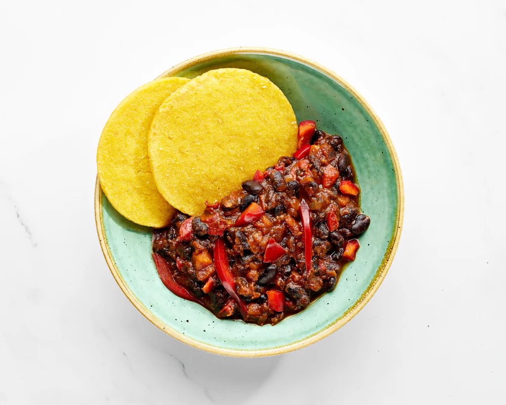 bevanda di SOIA [acqua, SOIA (13,50 %), sale], cipolla rossa, peperoni (18%), passata di pomodoro, fagioli neri (10%), farina di lenticchie rosse, farina di grano saraceno (6%), aceto balsamico, olio extravergine d’oliva, sale, curcuma, curry [curcuma, paprika, coriandolo, cumino, pepe nero, cardamomo, SENAPE, fieno greco, zenzero, chiodi di garofano], aroma di fumo naturale (0,04%)