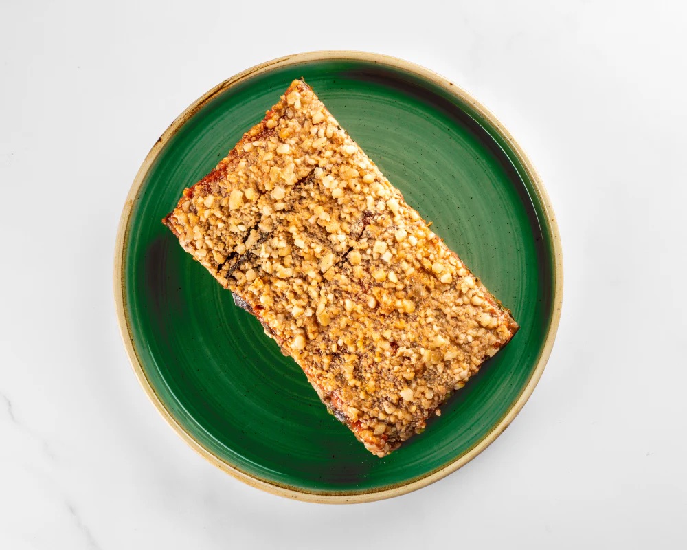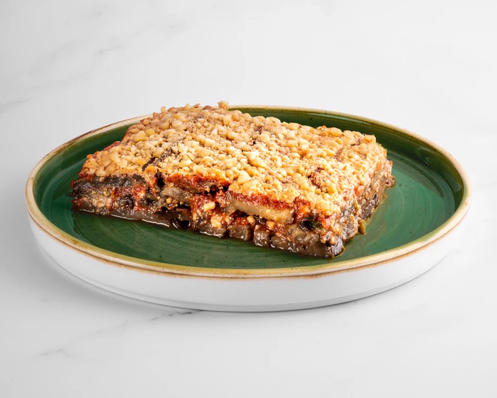 melanzane (67%), passata di pomodoro, ANACARDI, olio extravergine d’oliva, lievito alimentare, miso d’orzo [ORZO, SOIA, sale, acqua, koji], basilico, sale, farina di LUPINI, origano.